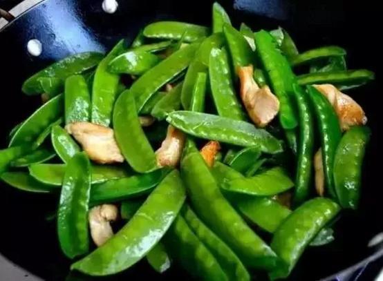4.倒入荷兰豆翻炒几分钟