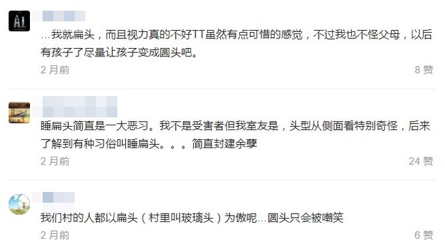 作为一个广州土著,我自己感觉在南方地区貌似没有太多对“扁头”的迷思,但在关于扁头的各种论坛上,则看到了很多北方的姑娘们,声泪俱下地控诉上一辈老人家在自己小时候硬生生把头睡扁,导致长大之后头型很丑的故事。