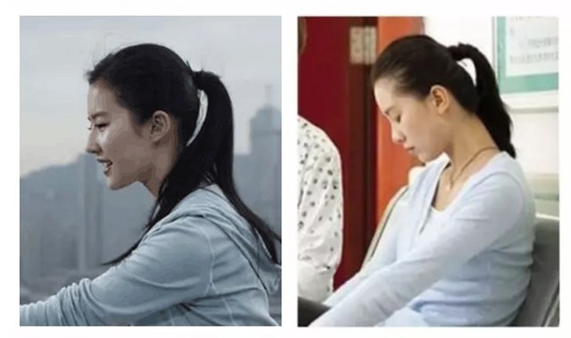 (刘亦菲的完美后脑勺 VS 刘诗诗的扁头,梳起马尾辫来高下立见。)