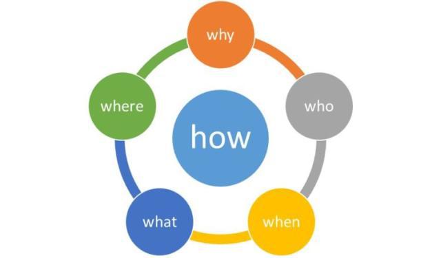 5W+1H是指原因(何因Why)、对象(何事What)、地点(何地Where)、时间(何时When)、人员(何人Who)、方法(何法How)等六个方面提出问题进行全面且系统的思考。
