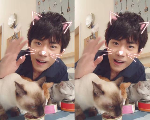 最后大佬只能使用绝招——用猫粮把三只猫咪聚在一起,然后对着我们甜甜的说了声“早上好,该起床了吧”。最令人心动的是他还加了可爱的猫咪特效,四只在一起的样子特别有爱。