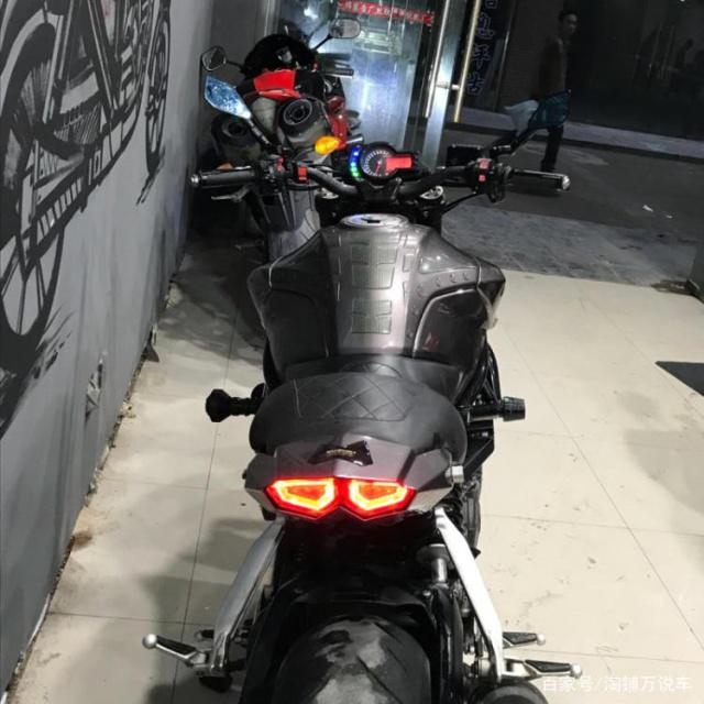 黄龙600改川崎Z1000的“蟒蛇头”,这个也算比较常见,网上有卖整套车头件,整车喷黑更换双出侧排,车尾改装成仿赛的风格,这种组合让黄龙600显得更加霸气。