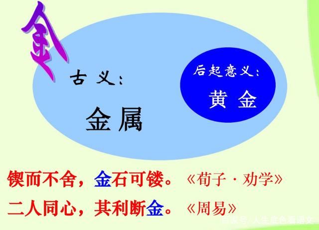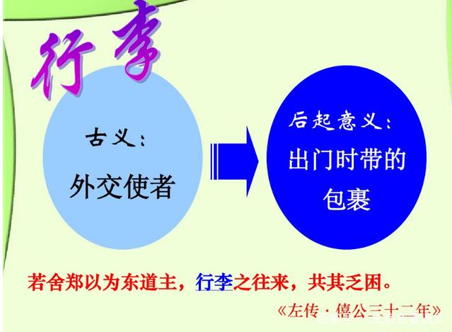 再如感情色彩变化型: “先帝不以臣卑鄙”中的“卑鄙”,古义是中性词,指地位低下; 今义是贬义词,指品行恶劣。
