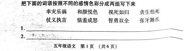 五年级语文期末考试感情色彩的词语分类,这道题目是不是出的简单了?