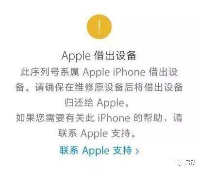 借出设备:去苹果官方检测设备问题时,有的设备需要返厂检测或维修的,售后人员会临时给你一个备用机,这种设备一般在市场上是不允许买卖的。此类设备都有特殊标记,查询序列号也会显示是借出设备,官方不保修。以下是官网查询结果: