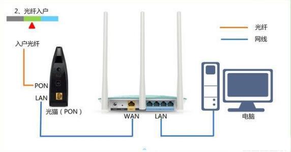 光猫上分一根线到你的路由器。的WAN口。再用网线从路由器的LAN口分一根线到电脑。没有电脑的用户不用另外接线。