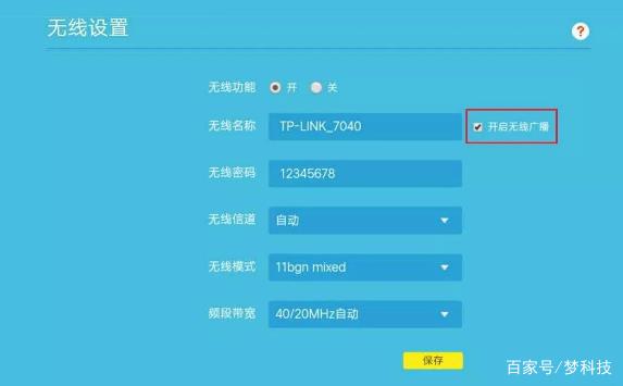 14.如果你想隐藏WIFI名称不被他人发现,我们在管理页面中找到“无线设置”,将“开启无线广播”前的勾去掉,即可隐藏WIFI。(有的路由器中叫“SSID广播”。)不过你自己要连接到无线也要正确的 输入名称和无线密码才可以连接。