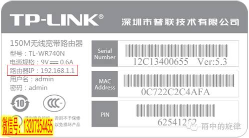 具体登录地址请查看路由器壳体底部的标贴,如下图: