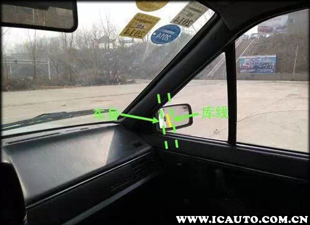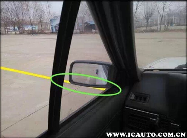 第二,开始进行左倒库,通过左后视镜的下沿观察当控制线与左后视镜下沿对其时,进行左打死,当然,每个人的身高视力不同,你要在练习中找到适合你自己的那个点位。