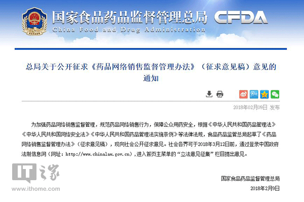 而在近日,国家食品药品监督管理总局在其官网发布了一则《总局关于公开征求<药品网络销售监督管理办法>(征求意见稿)意见的通知》。