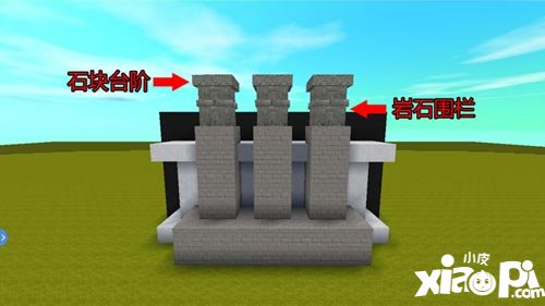 第五步:在建筑的左边用灰色硬沙块搭建长条柱子