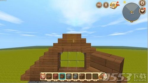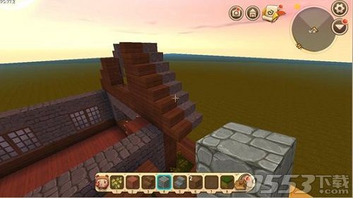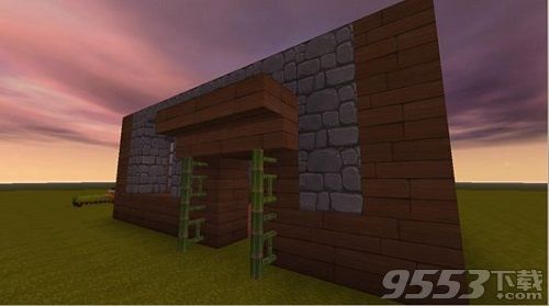 第五步,弄好正门我们来弄屋子左右两边,这里窗户也用楼梯倒放来做窗框。